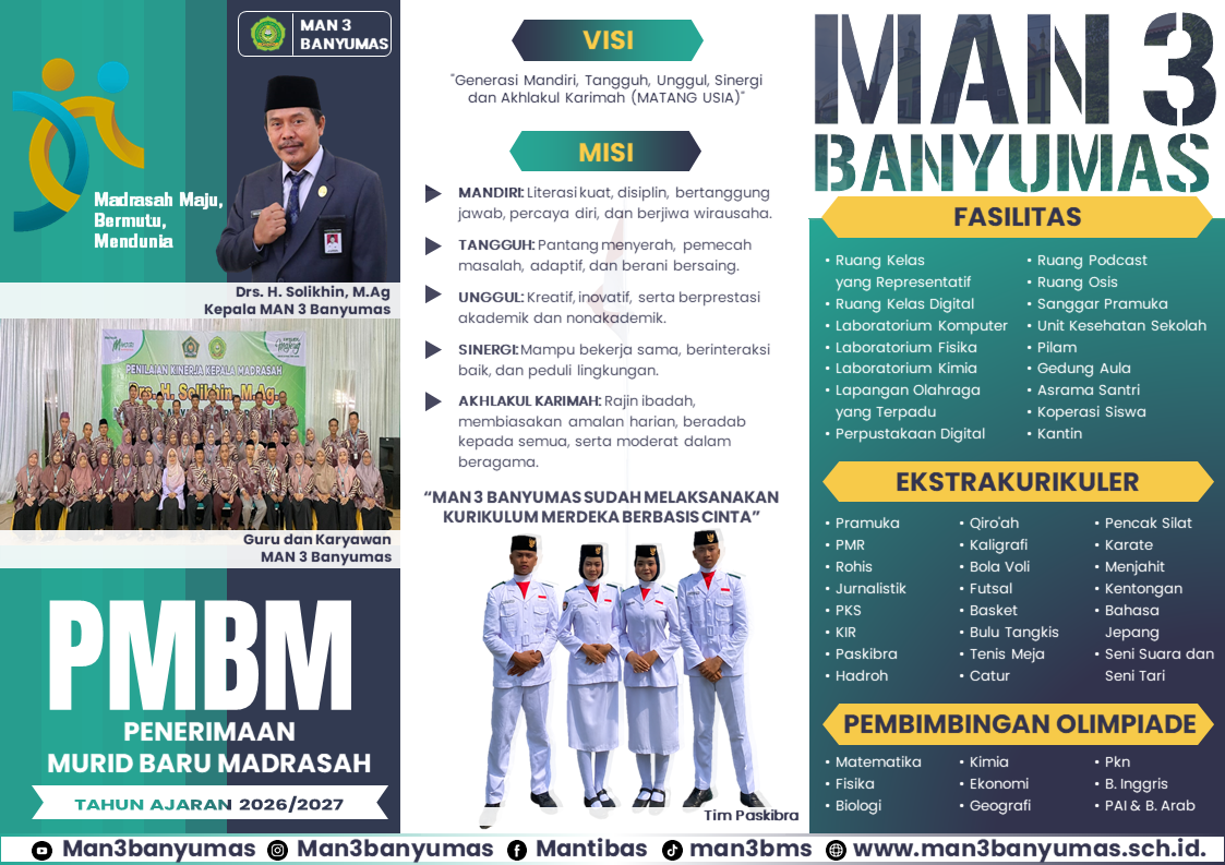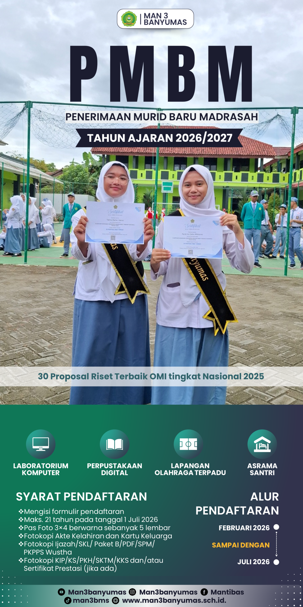 Mari adik adik kelas 9..bergabunglah dg MANTIBAS (MAN 3 BANYUMAS)BERAKHLAK TERPUJI TERDEPAN DALAM PRESTASI