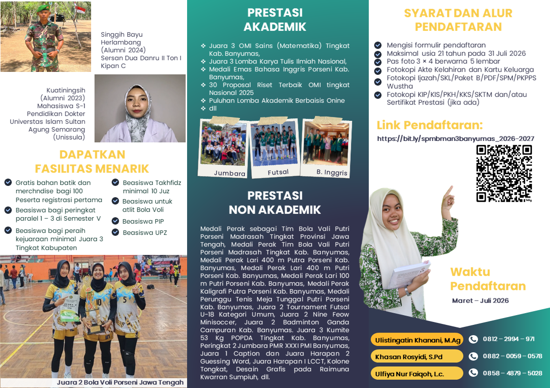 Bagi adik-adik kelas IX SMP/MTs segera bergabung bersama kami di MAN 3 Banyumas.