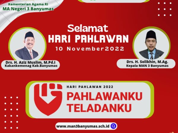 Banyumas—MAN 3 Banyumas mengadakan upacara Hari Pahlawan yang dilaksanakan pada Kamis, (10/11) di halaman MAN 3 Banyumas. Hari Pahlawan diperingati setiap tahunnya pada 10..
